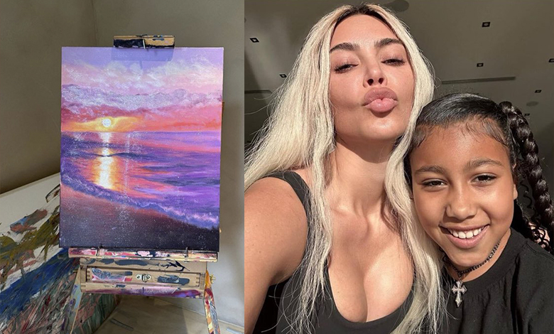 “North ha estado trabajando en esta pintura de paisajes al atardecer durante unas semanas y ha quedado tan hermosa. Estoy tan orgullosa de mi bebé”, se lee en la publicación.