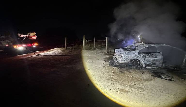 El número de emergencias 911 recibió una llamada donde mencionaban que en una carretera de terracería se encontraba en llamas un vehículo tras colisionar contra un objeto fijo, se desconocía si el chofer se hallaba en el interior.