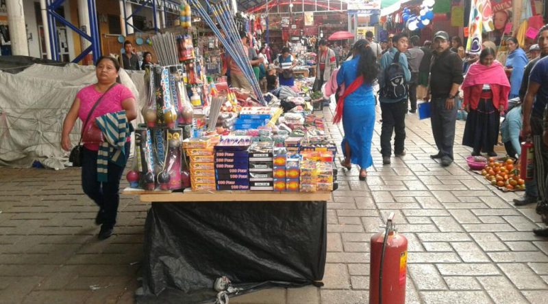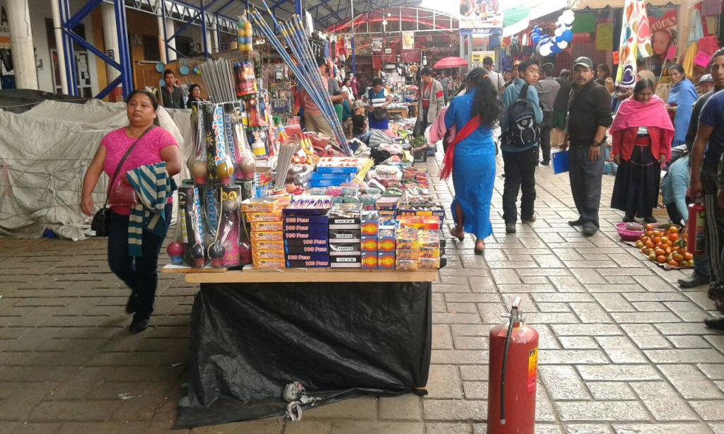 Los mercados y calles cercanas a la central de abastos de San Cristóbal de Las Casas se llenan de puestos ilegales que ofrecen juegos pirotécnicos