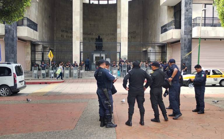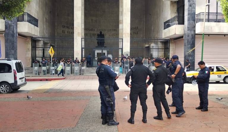 SSPC ha desplegado un amplio operativo en el Congreso del Estado debido a una protesta que se lleva a cabo, por tercer día consecutivo