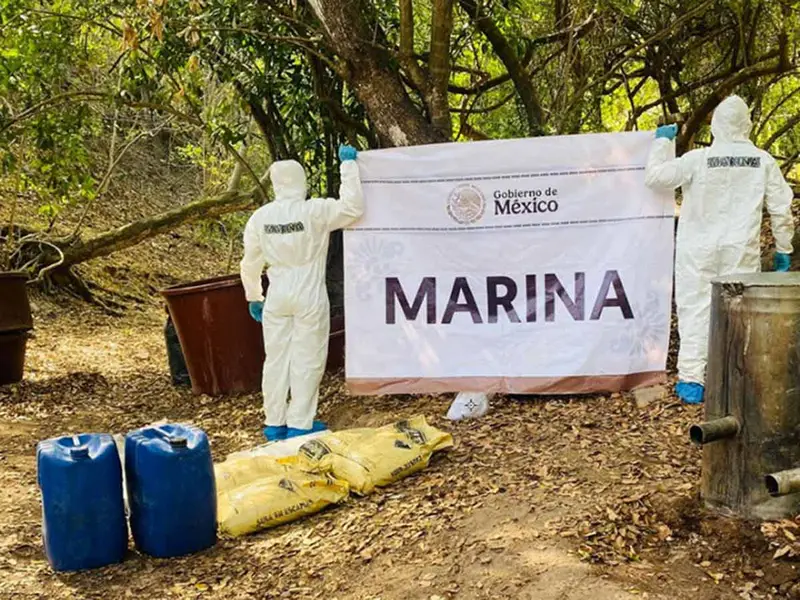 La Semar informó que en lo que va de 2025 se han desmantelado 10 laboratorios clandestinos, con el aseguramiento de 8.4 toneladas de metanfetaminas y más de 68 toneladas de sustancias químicas.
